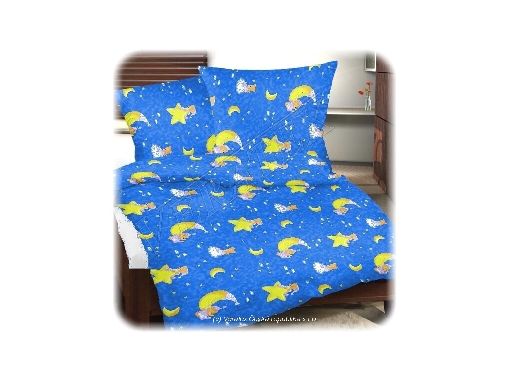 Dětské povlečení krep měsíc modř 45x64 90x130 (R0611)
