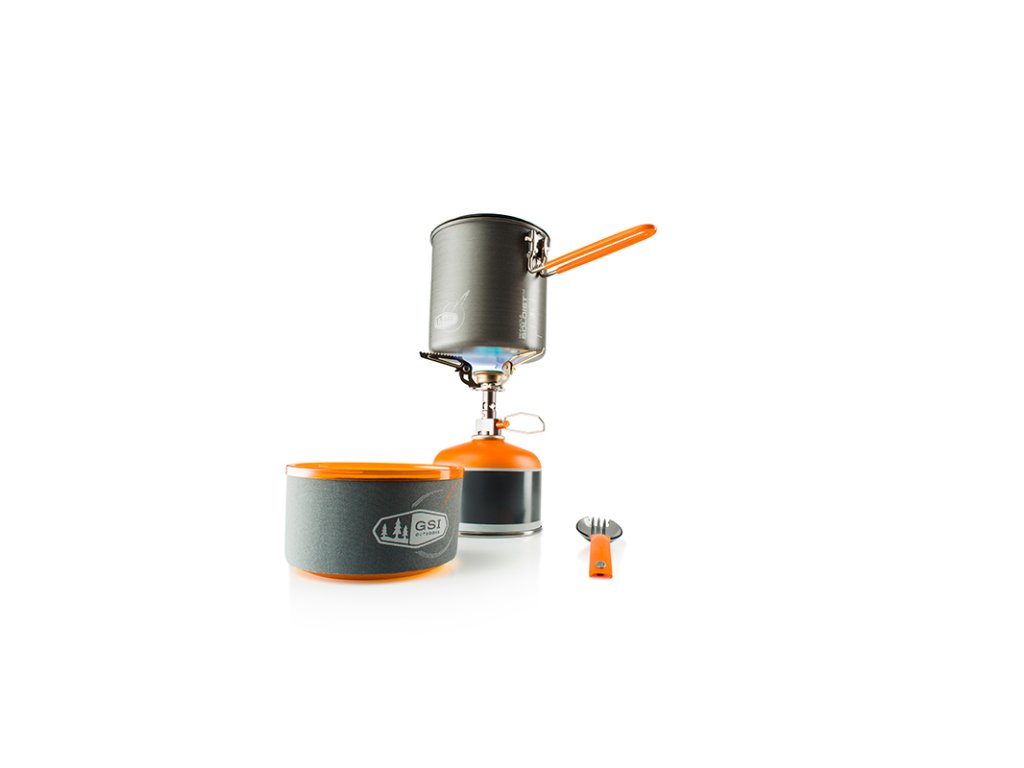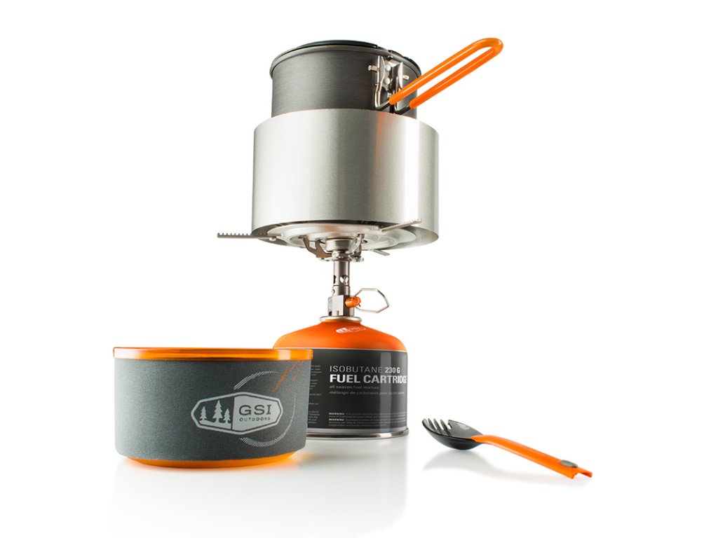 Spolehlivá a lehká skládací sada nádobí v nejvyšší úpravě Pinnacle, s hořákem, pro jednu osobu. Sada obsahuje vše potřebné pro přípravu jídla nebo teplých nápojů pro jednu osobu.